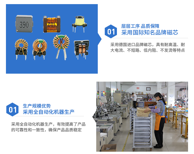 1.采用鐵粉芯、錳鋅、鐵硅鋁、非晶等等材質(zhì),以產(chǎn)生超大的電感量,高電流,防干擾對策